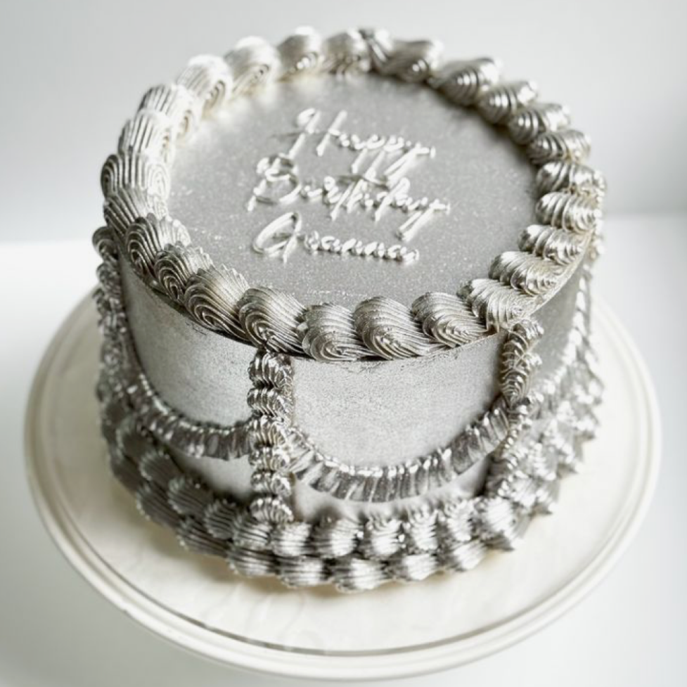 Silver Metallic Round Birthday Cake