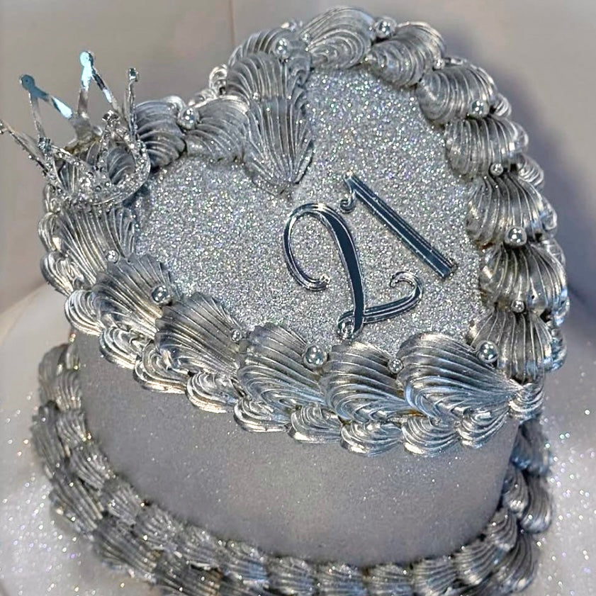 Silver Glitter Heart Blow Out cake
