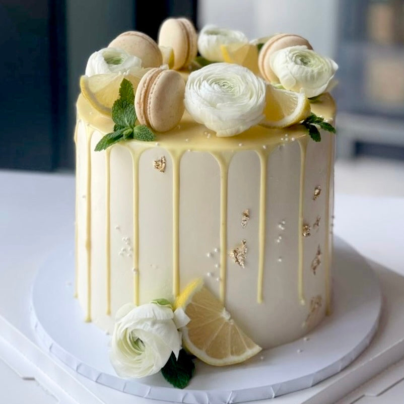 Tangy Lemon Cake with White Flowers