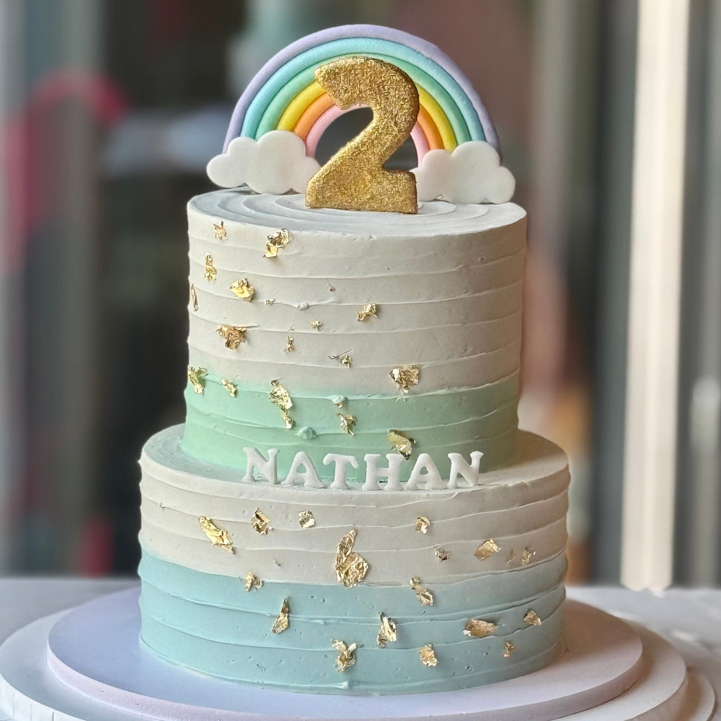 Two Tiered Birthday Cake with Pastel Rainbow