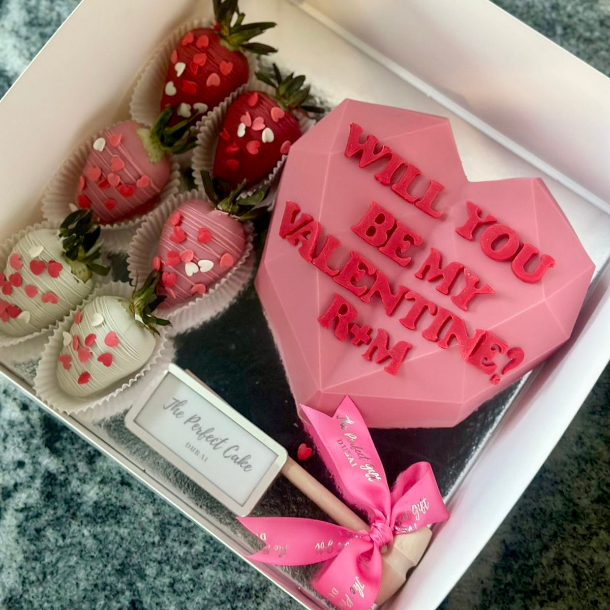 'Will you be my Valentine' Choco-Smash Heart Cake with Dipped Strawberries