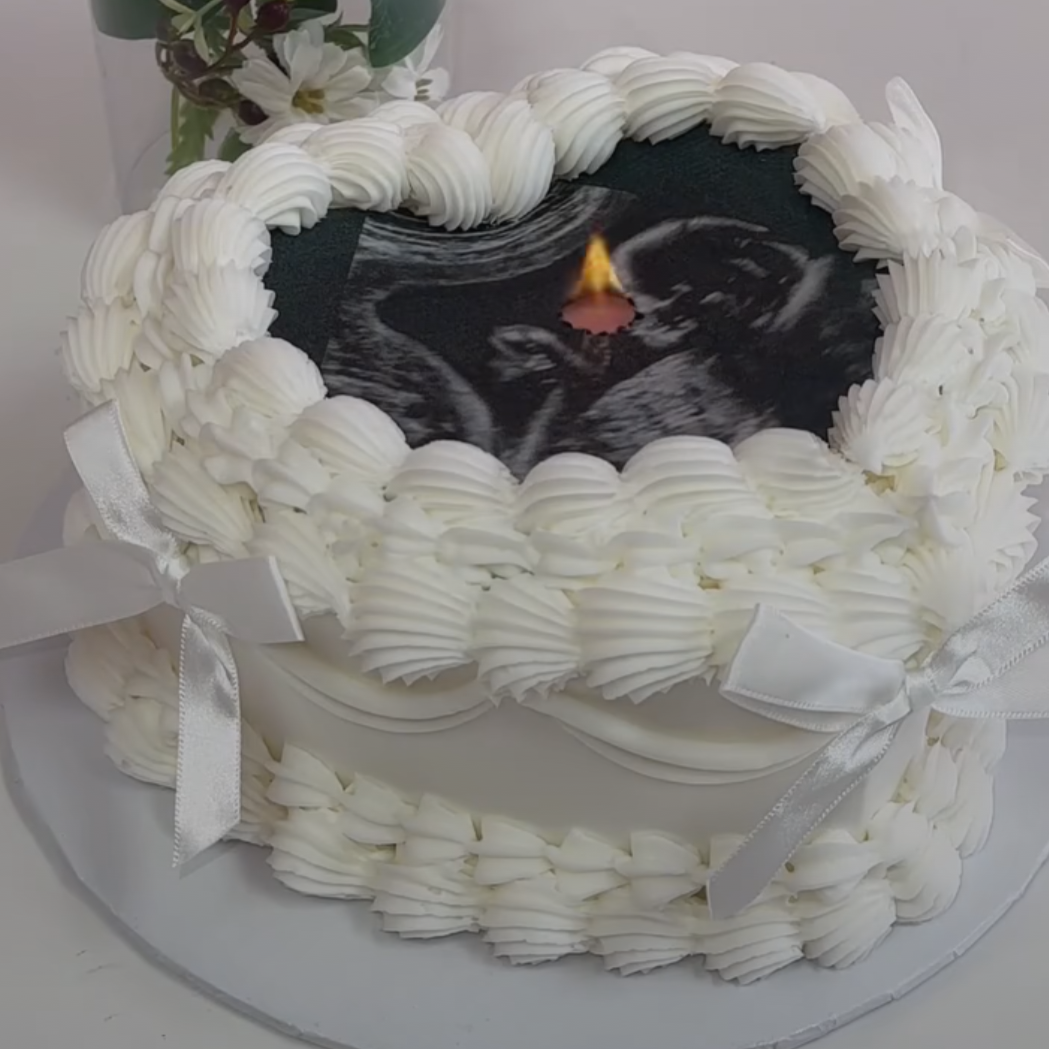 Baby Gender Reveal - Burnout Heart Cake with Ultrasound Image