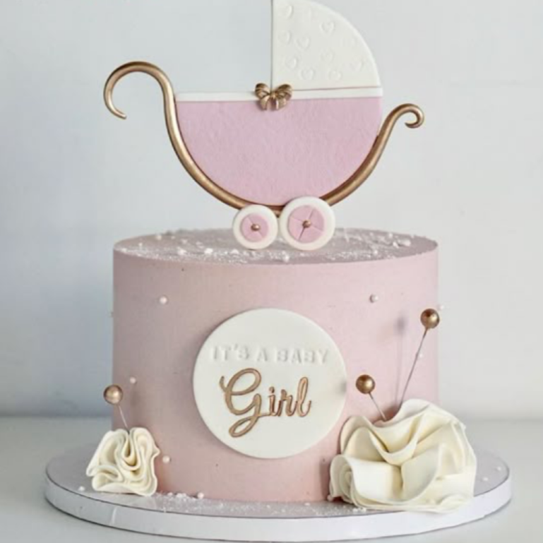 Surprise them with this elegant pink & white carriage themed cake for your baby's birthday, baby shower or to celebrate your new born! Made with Swiss chocolate and premium ingredients, This alluring cake is composed out of a sponge base & cream fillings of your choice.