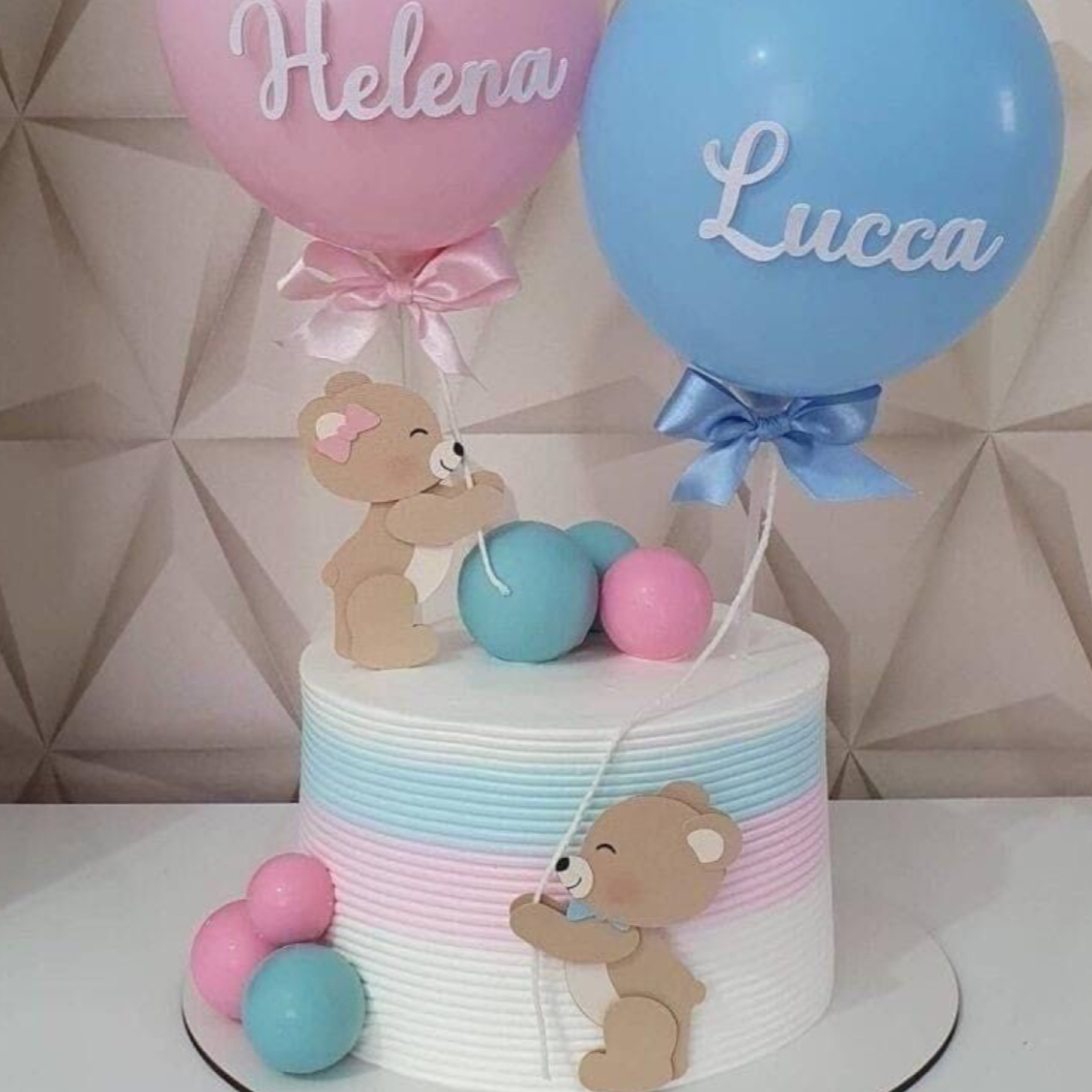 Surprise them with this elegant pink & blue teddy themed cake with balloon personalised with baby names for your baby's birthday, baby shower or to celebrate your new borns! Made with Swiss chocolate and premium ingredients, This alluring cake is composed out of a sponge base & cream fillings of your choice.