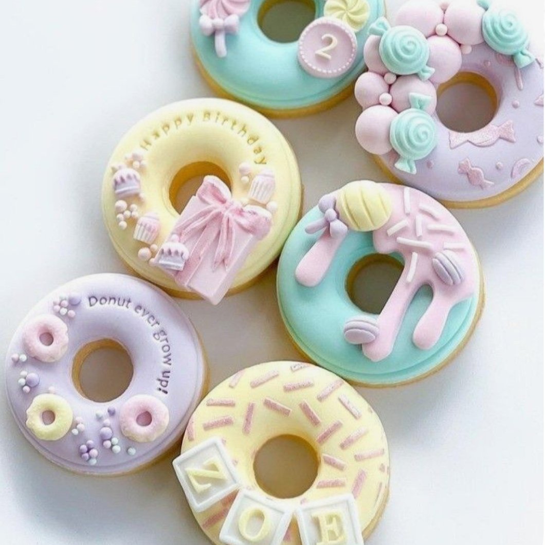 The donuts feature a sweet design and come in pastel colors and decorated with candies & sprinkles design.