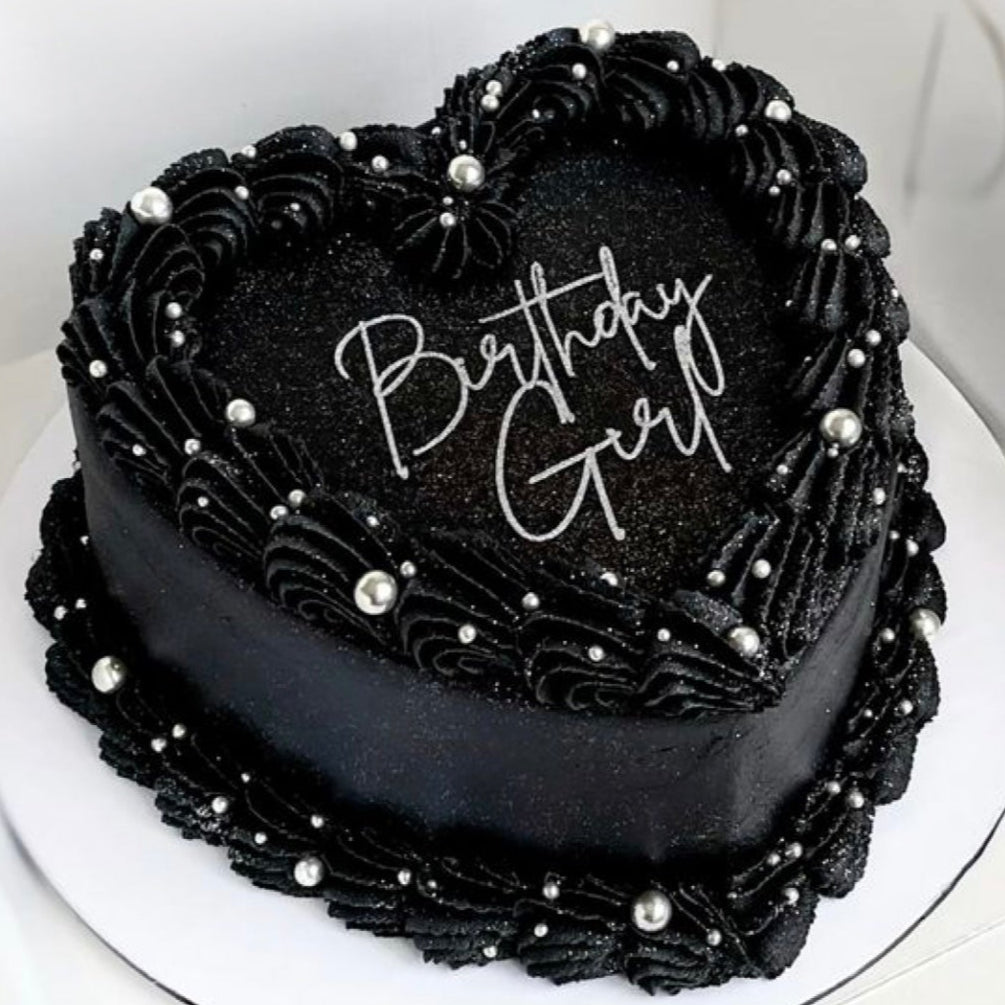 Send your best wishes with this trendy Heart Cake!  This gorgeous creation is composed of sponge cake in the shape of a heart, in black with elegant piping design on top of the cake and finally decorated with edible glitter sparkling & shining the cake.