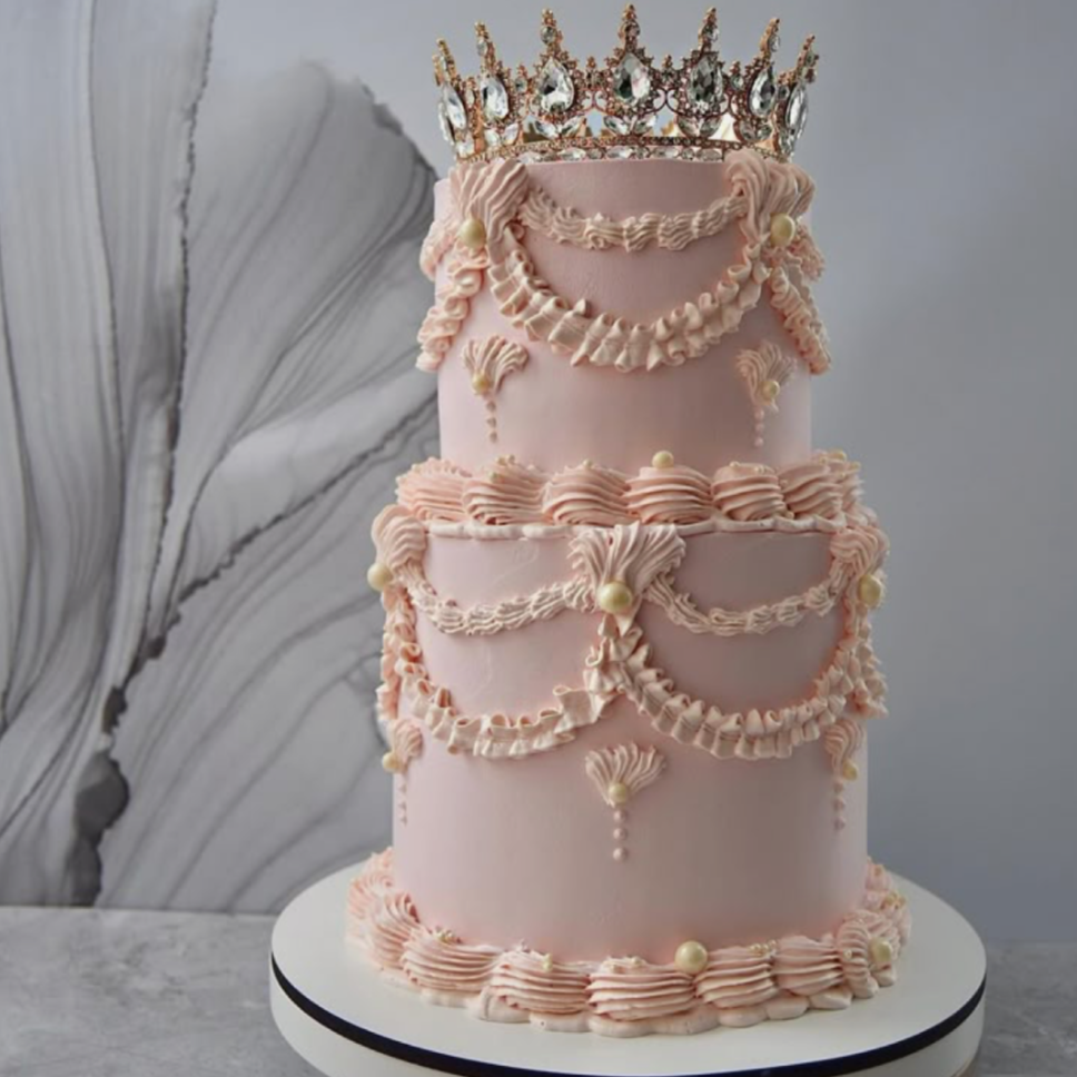 Surprise them with this Elegant two tier pink cake topped with a Royal crown. A Perfect gift for a Queen or Princess! All our cakes are made from premium ingredients from Europe and Swiss chocolate making it light in texture yet full of flavor!