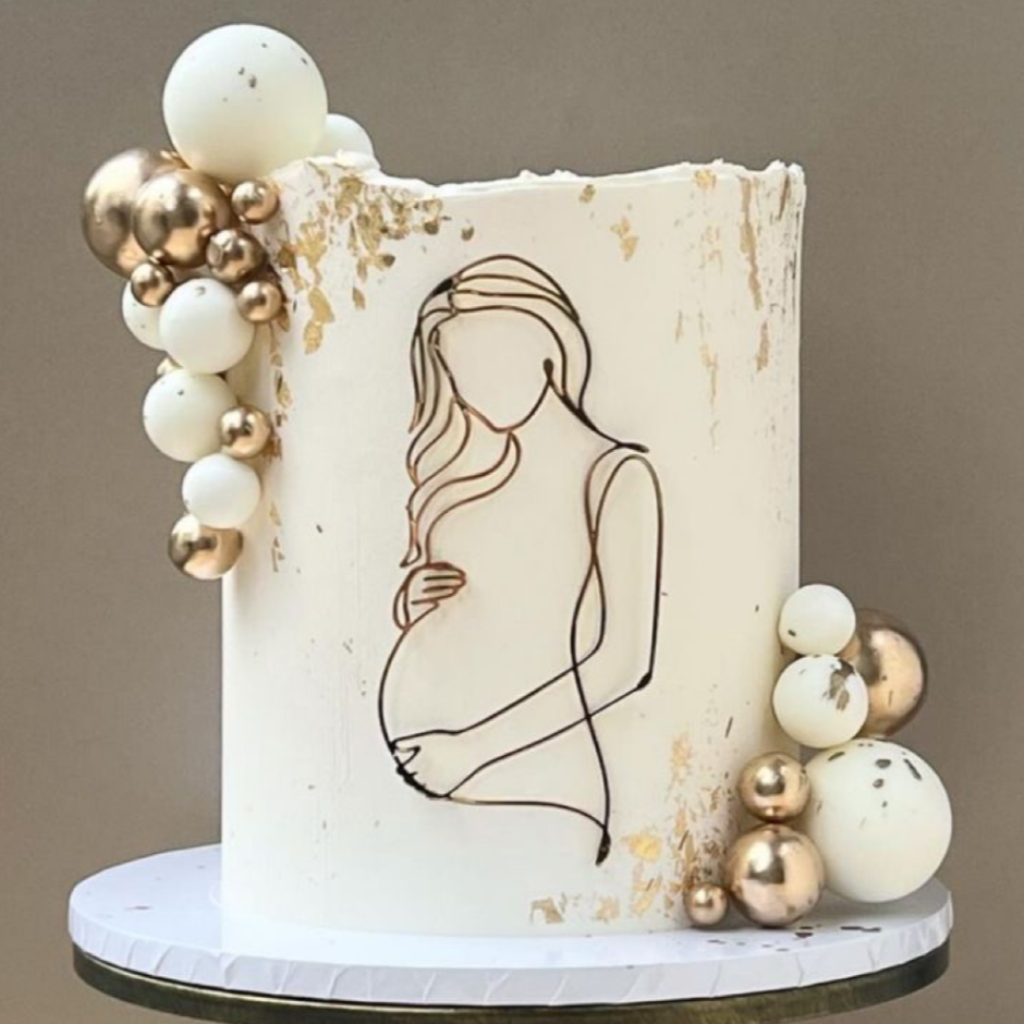 Surprise them with this elegant white & gold themed cake for their baby shower or gender reveal party! Made with Swiss chocolate and premium ingredients, This alluring cake is composed out of a sponge base & cream fillings of your choice.